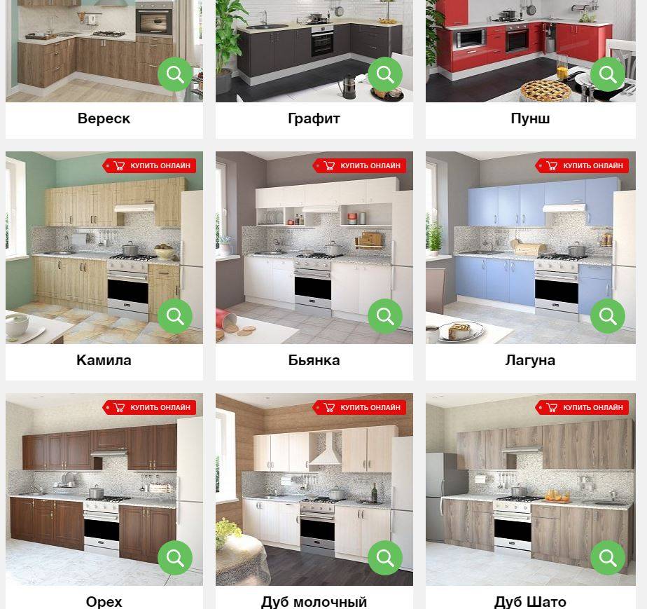Один из лучших сервисов, который позволяет быстро и бесплатно получить кухню своей мечты. На сайте покупатели найдут большое разнообразие моделей кухни, что часто помогает определиться с тем, какой должен быть гарнитур в доме. Популярными вариантами являются «Антея», «Васаби», «Прованс», «Вереск». Данные названия говорят о расцветках мебели.