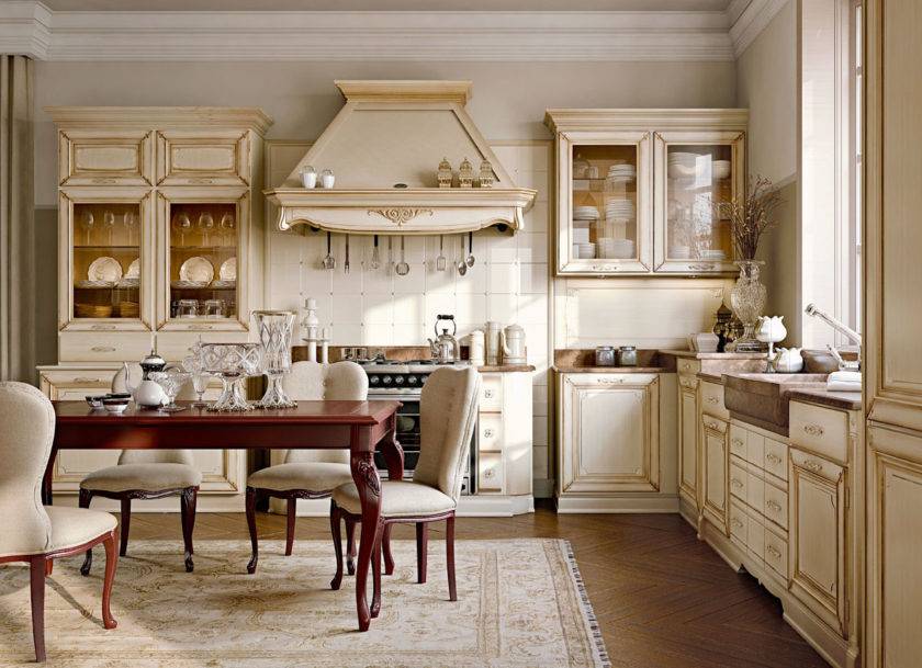 Светлые тона в классической кухне остаются актуальными и в нашем времени.