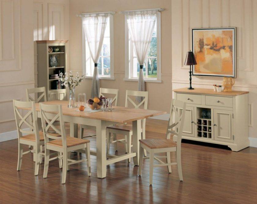 Центральная часть обеденной группы — стол. Он должен быть большим, массивным, изготовленным из ценных пород дерева: бука, дуба, вишни и других. Стулья приобретаются вместе со столом, как один гарнитур. Они обладают высокими резными спинками, витыми ножками, могут быть просто из дерева или с мягкой обивкой.