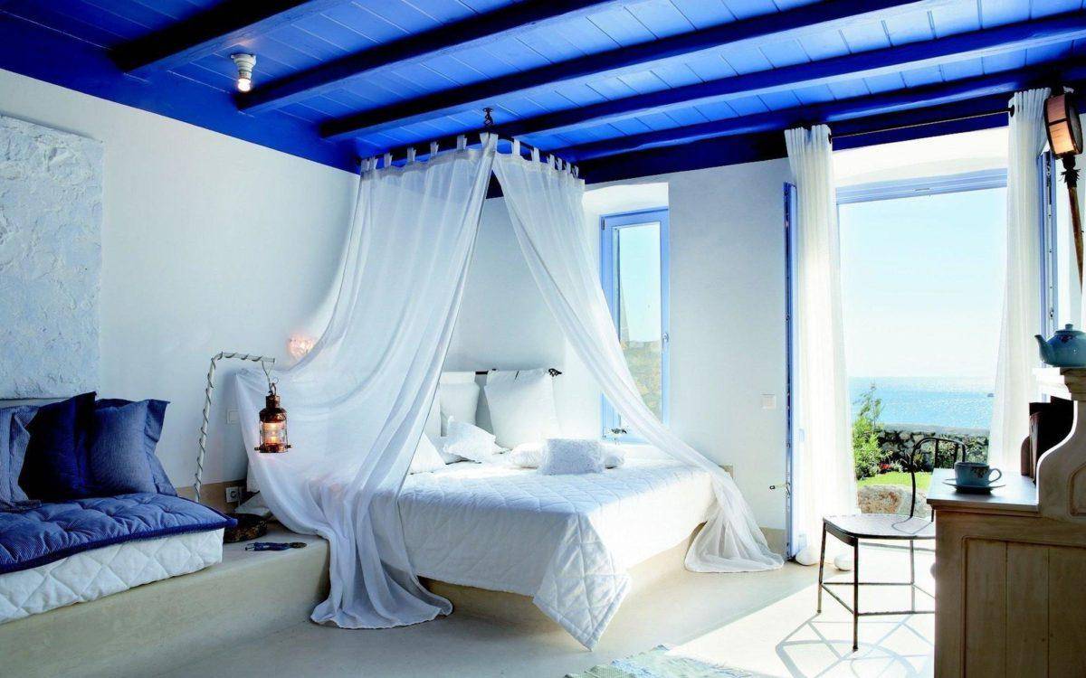 Напротив, для греческого стиля характерно активное использование холодных тонов. Цветовая гамма греческого флага — белый с синим или синим — особенно распространена.