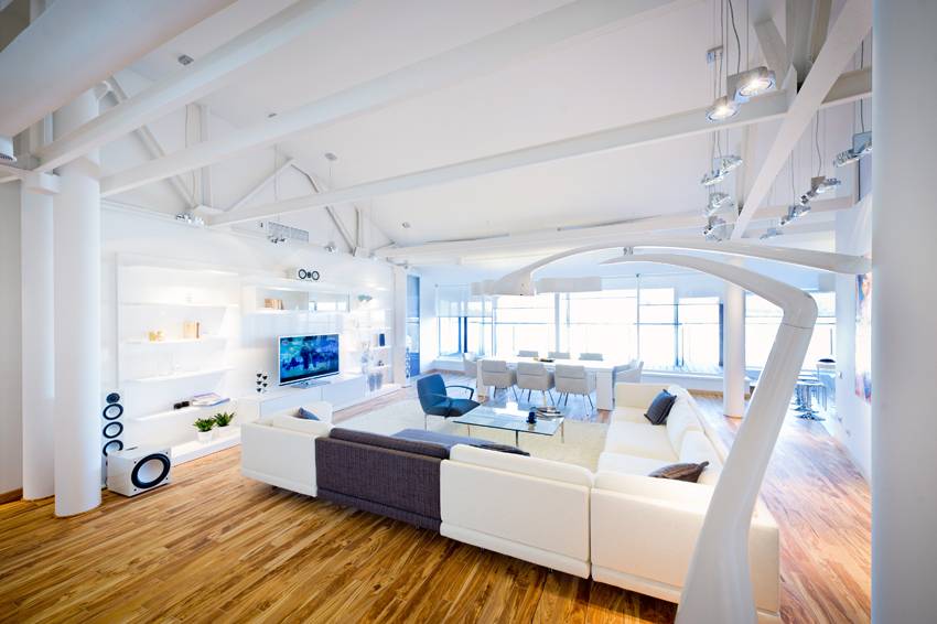 Система «Умный дом» делает интерьер более функциональным. Она позволяет управлять помещением на расстоянии с помощью смартфона или планшета. Высокотехнологичность «Умного дома» идеально вписывается в концепцию стиля hi-tech и часто используется в урбанистических интерьерах.