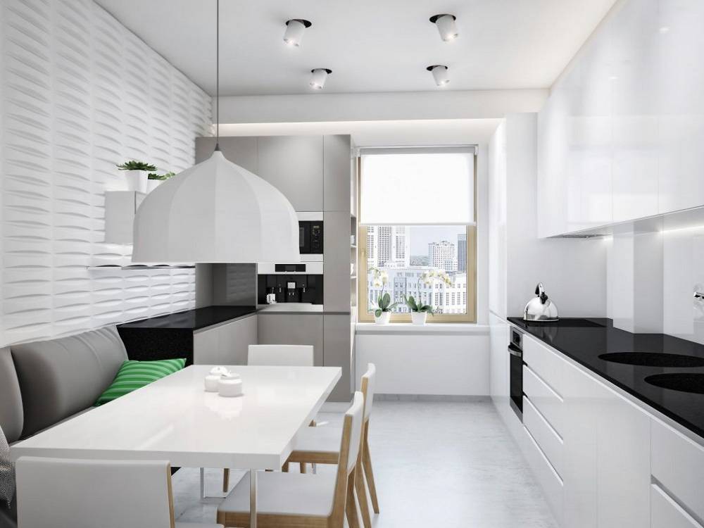 Необходимо сразу понимать, чтобы добиться интерьерного результата, придётся ставить двухконфорочную плиту, заказывать узкий компактный гарнитур и т. д. По этим и другим причинам рекомендуется применять минималистскую стилистику в просторных кухнях, площадь которых начинается хотя бы от 8 квадратов.