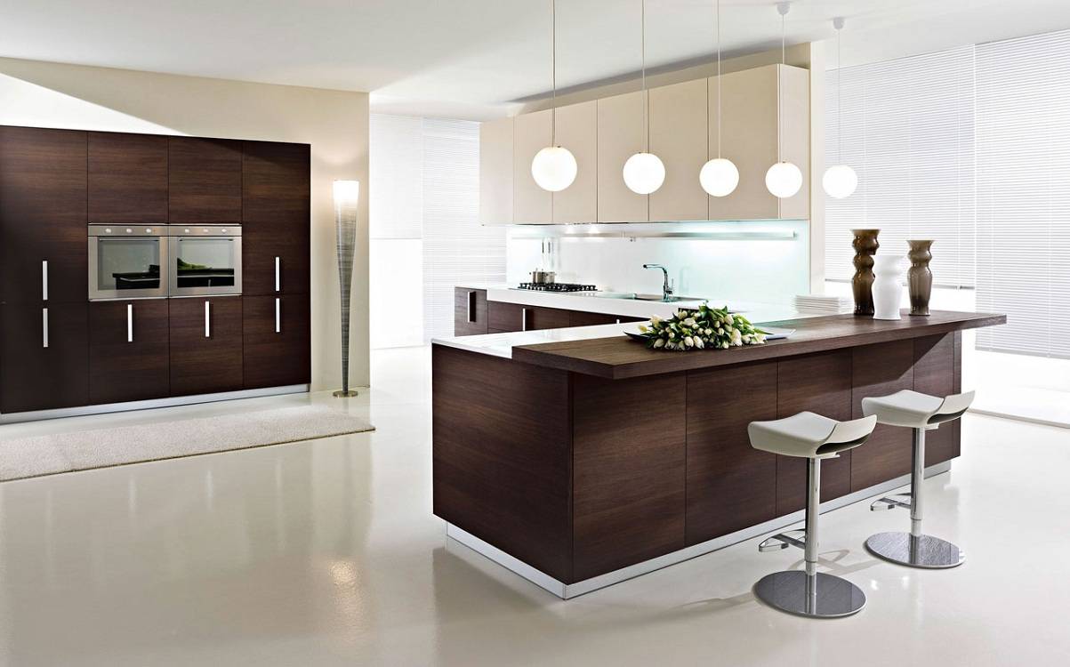В отделке используются простые материалы: дерево, стекло, камень, бетон, металл. За счет благородных натуральных материалов кухня в стиле минимализма выглядит стильно, дорого и экологично.