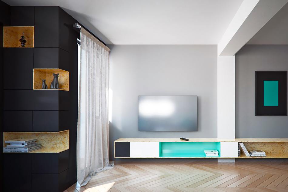 Благодаря данному архитектурному элементу, получается, не только гармонично вписать тв-устойство и другую технику в окружающую обстановку, но и удобно спрятать различные провода или кабели.