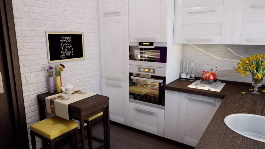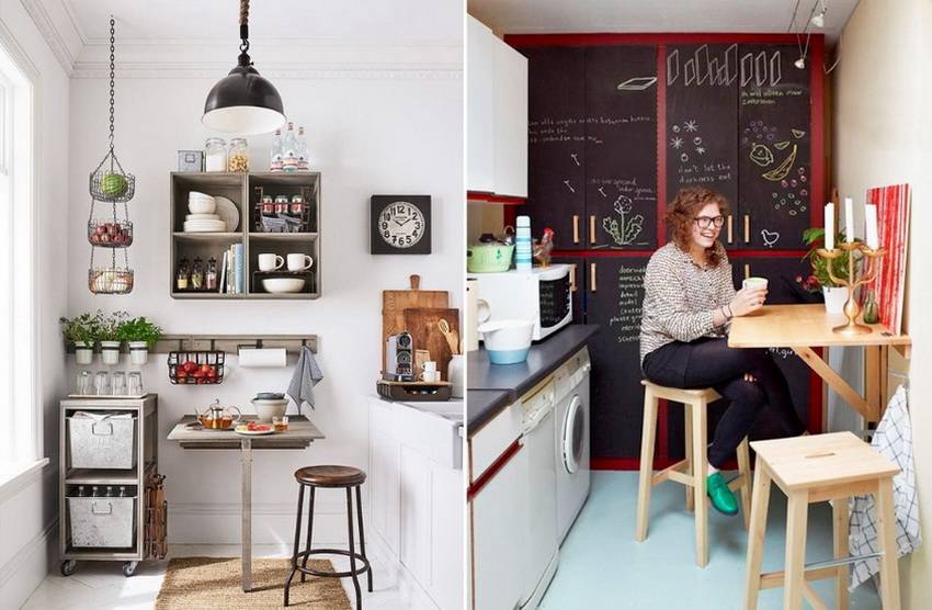 Для совсем маленьких кухонь, где каждый сантиметр на счету, найдутся приемлемые и достаточно интересные варианты.
