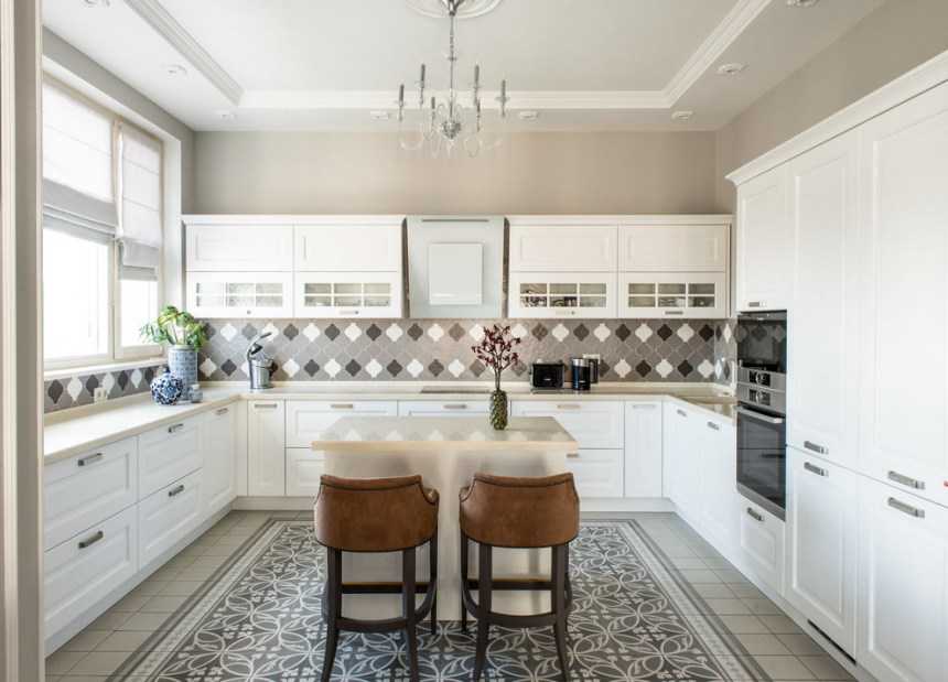 Данный вариант планировки позволяет кухонному гарнитуру буквально окружить кулинара, который в удобный момент сможет достать из шкафа нужную ему вещь максимально быстро. Эта кухня весьма вместительна, однако, считается самой громоздкой, так как для него нужно действительно большое количество площади.