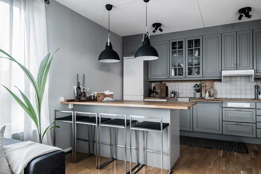 - позволяет разделить комнату на несколько зон, например, для готовки или в столовой.