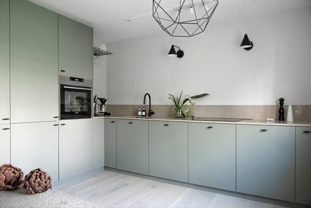 Вечная база всех современных стилей. В реальных квартирах кухни обрастают большим количеством предметов и оказываются в вечном беспорядке. Поэтому наше всё — закрытые места хранения.