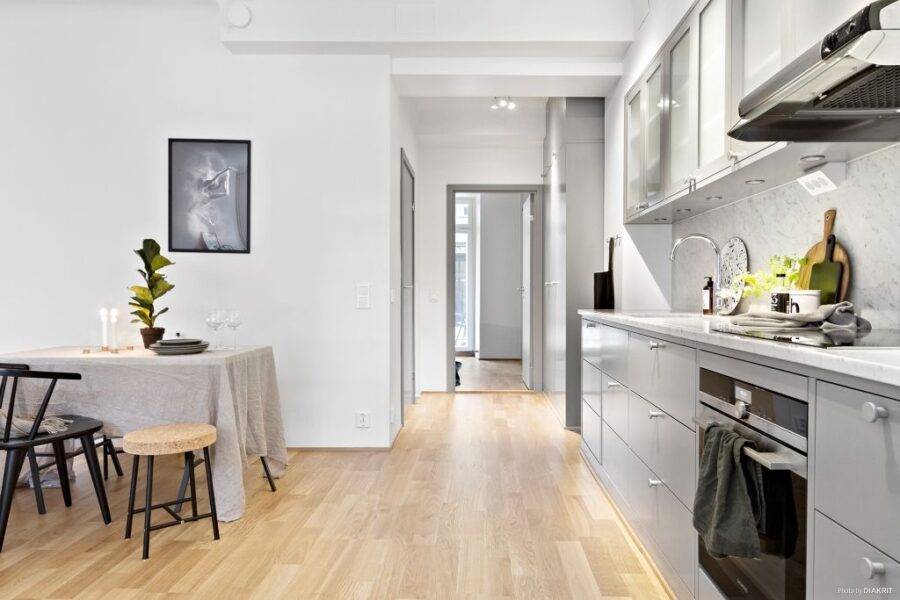 Много фото и идеи по адаптации под реальные квартиры: интерьер кухни в скандинавском стиле.