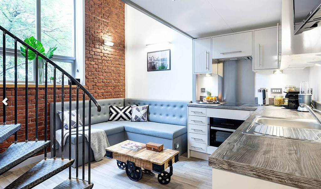 - Индустриальный стиль. Лаконично впишутся кухонные уголки из кожи или ее искусственного заменителя. Подойдет массивная мебель.