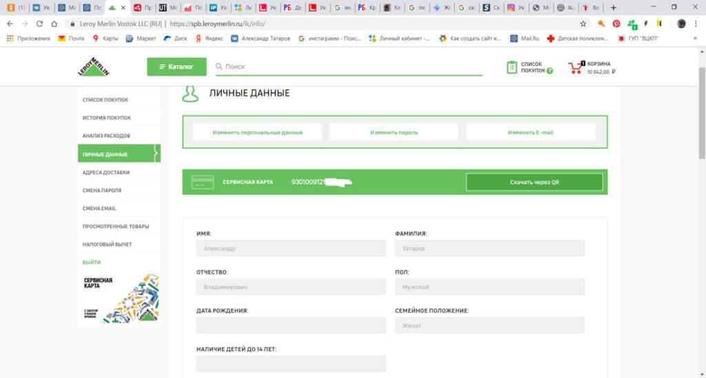 Вход в личный кабинет Леруа Мерлен по сервисной карте
