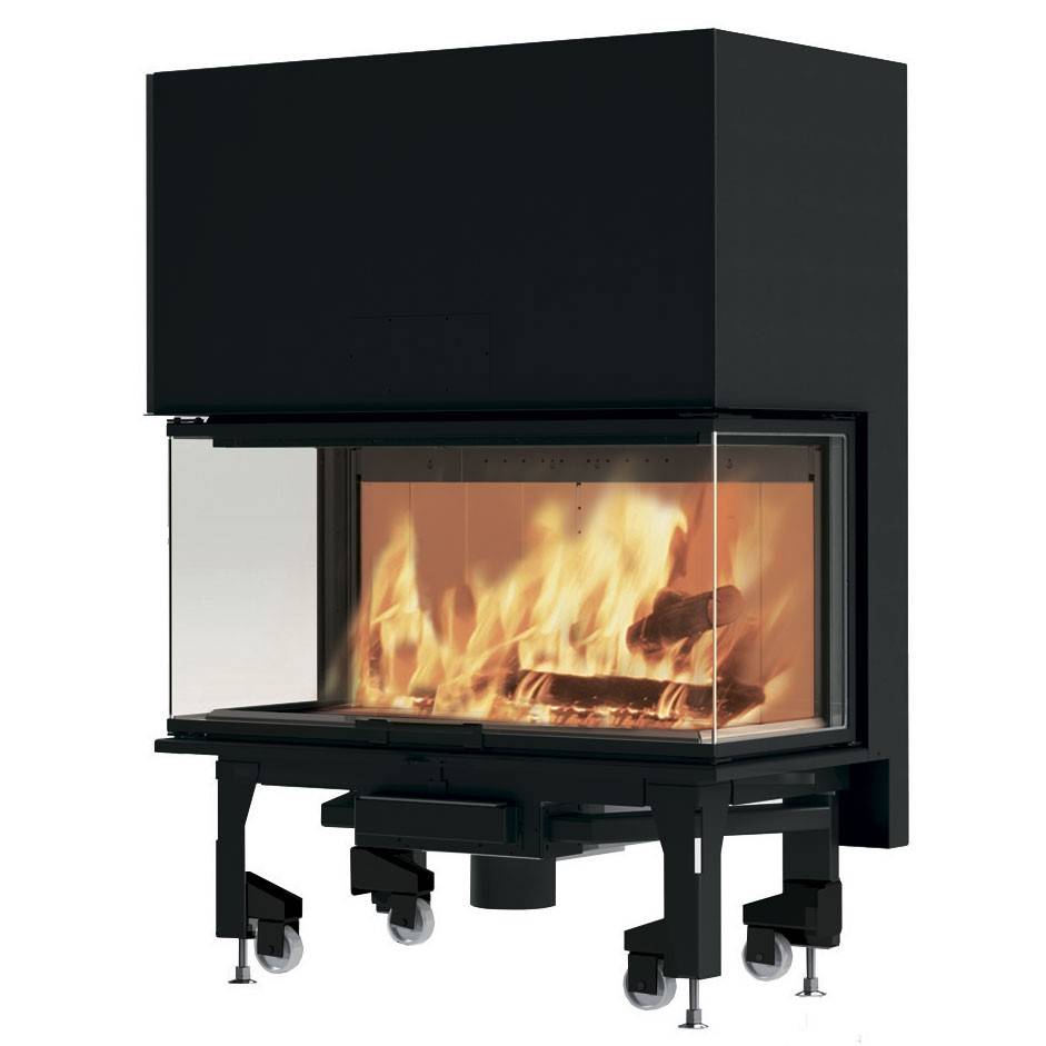 Угловые каминные топки обладают самой простой конфигурацией, что несомненно отразилось на их стоимости: они самые дешевые среди каминов. Такие конструкции легко монтируются и занимают небольшое пространство. Стоит отметить их высокую степень теплоотдачи, которая образуется за счет отражения тепла в воздух от стен.