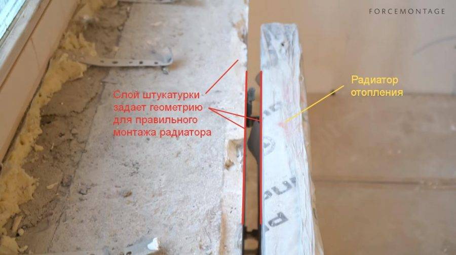 Для того, чтобы правильно установить радиатор отопления, мастеру необходимо видеть финальную геометрию стен. Если смонтировать радиатор раньше, то после завершения отделки есть риск, что он будет находиться не совсем там, где должен относительно стены и пола.