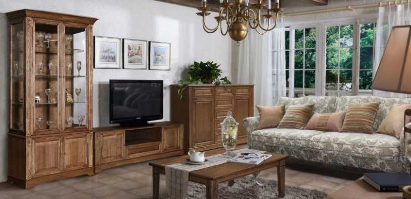 Старинный стиль просит старинную обстановку. Мебель для гостиной в стиле Прованс отличается особой декоративностью. Гнутые ножки, украшенные фасады, красивые потертости, патина – все это признаки французского деревенского шика.