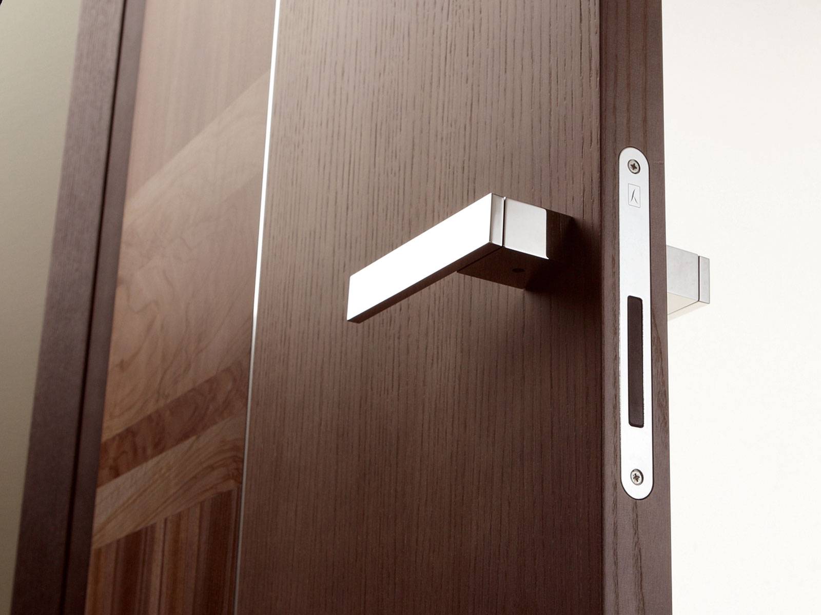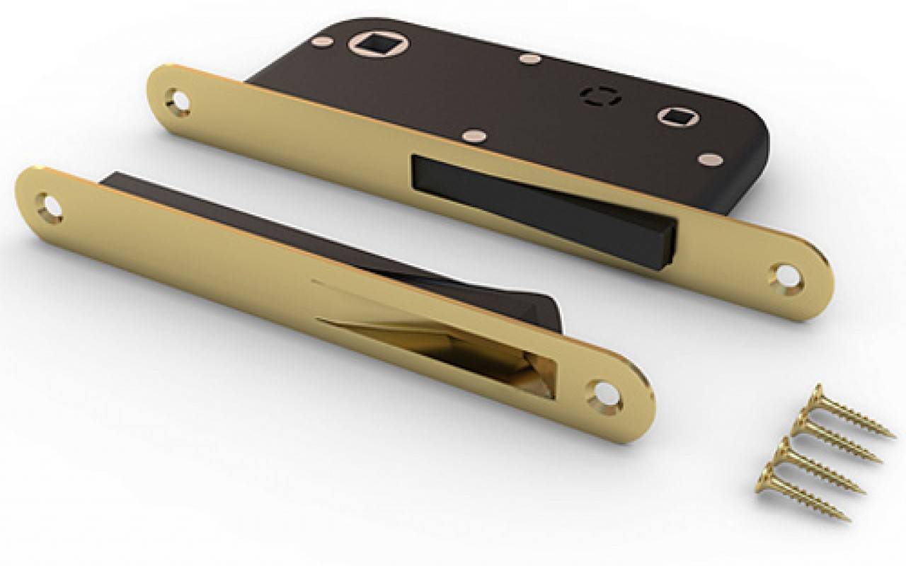 Ригель конструкции с магнитом полностью входит в полотно двери, поэтому в открытом положении нет выступающих частей, за которые можно зацепиться. Установка такой ручки имеет такой же алгоритм, что и для обычного механического образца. При этом не требуется особых инструментов. Даже в случае оседания двери, такая ручка с замком продолжит функционировать без перебоев, что не всегда возможно с механическим изделием, т. к. язычок перестает попадать в ответную планку.