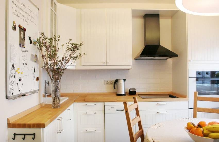 Владельцы маленьких кухонь наверняка сталкиваются с проблемой неприятных запахов, которые скапливаются в процессе готовки и распространяются по квартире. Чтобы этого избежать, рекомендуется не экономить на вытяжке, а приобрести хорошую модель с большой мощностью.