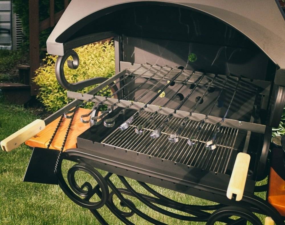 Из минусов такой жаровни выделяют то, что она много весит и дорого стоит. А если вы захотите сделать изделие более функциональным и приделать к нему что-нибудь еще, вес и стоимость только увеличатся. Несмотря на это, подобная модель обладает следующими достоинствами: