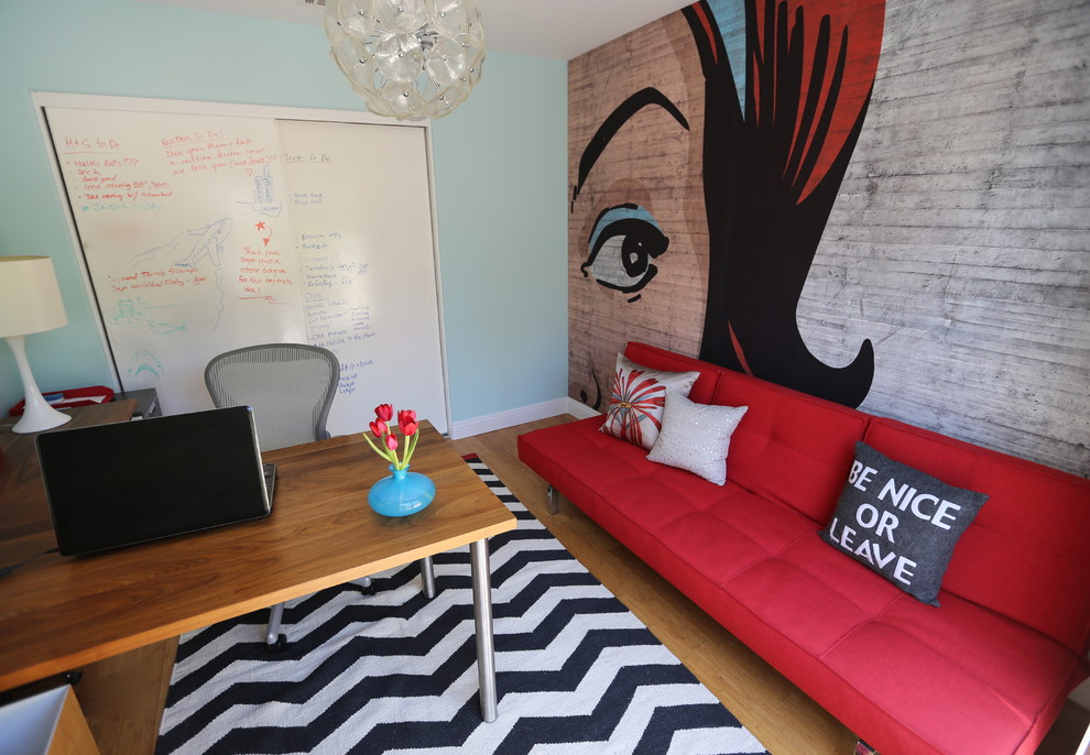 Третья идея, которая имеет право на существование – грифельная или маркерная стена в кабинете или возле рабочего места. Очень пригодится такая креативная штука для записи важных дел, внезапных гениальных мыслей, рисования графиков и т.д.
