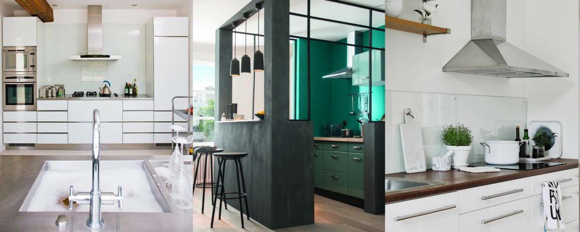 Еще один подходящий материал для отделки стен кухни это стекло. При этом оно может быть использовано минимум тремя разными вариантами, а именно: