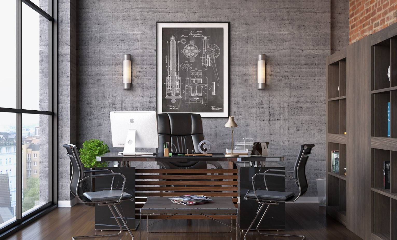 - С помощью бетонных плит создают «нежилую» атмосферу, тот самый индустриальный дух. Например, бетонное перекрытие можно оставить необработанным, как и стены. Если материал строительства другой, то бетон имитируют с помощью специальной штукатурки, накладных панелей, на крайний случай – фотообоев.
