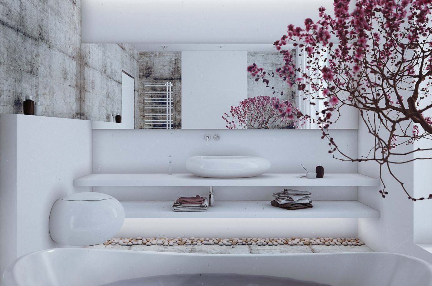 Округлая ванная будет гармонировать с бетонной стеной в стиле лофт
