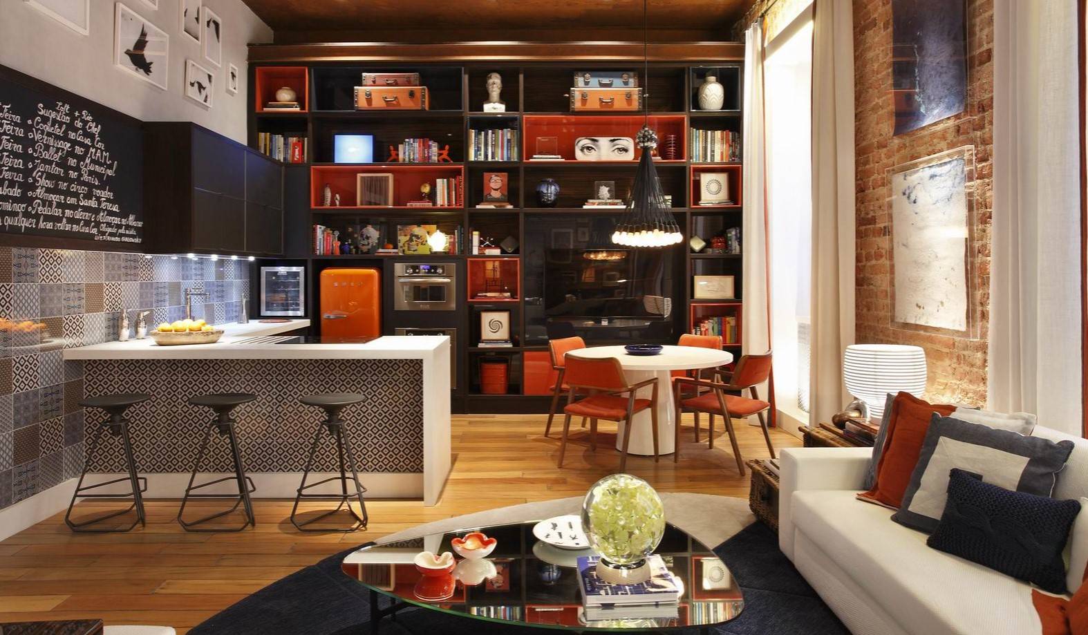 - богемный — имитация старых производственных помещений, где потертая мебель сочетается с современной техникой и дизайнерскими решениями, дополняют стиль скульптуры, картины на стенах и музыкальные инструменты;
