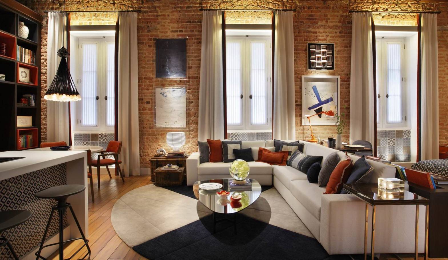 - минимализм в отделке, грубая облицовка стен. В аутентичных лофтах стены оставляют «голыми», т.е. бетонными или кирпичными. В обычной квартире можно создать имитацию кирпичной кладки или же выполнить самую простое и немного небрежное оштукатуривание;