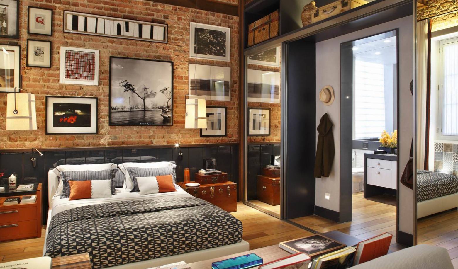 «Фабричная» фактура в отделке это главная тема, которая сразу указывает на принадлежность к лофту. Холодный бетон, кирпич и дерево его излюбленные элементы, которые делают интерьер слегка небрежным, с ноткой брутального шика. В помещении также необходимо выделить определённые зоны, так как межкомнатные перегородки отсутствуют, отдельно расположен только санузел.