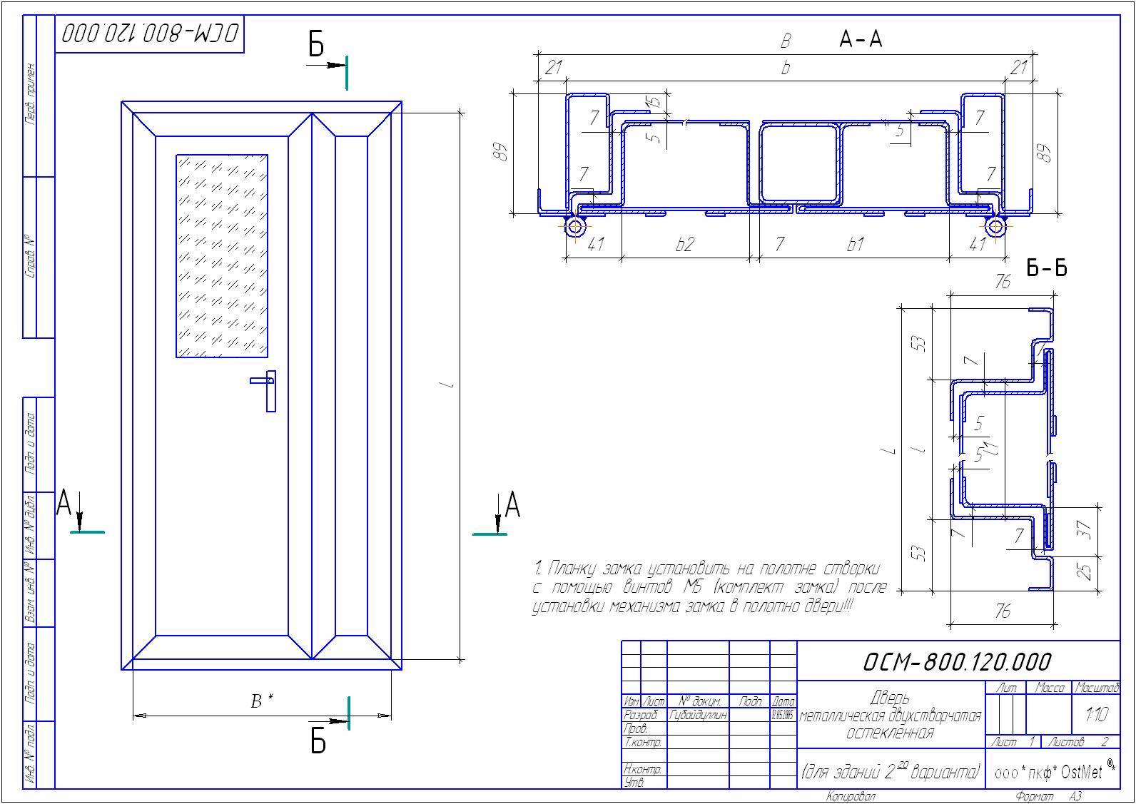 В процессе подготовки также стоит начать разрабатывать чертеж металлической двери. Если дверное полотно будет уникальным и эксклюзивным, тогда и чертеж делается своими руками. Если же проем стандартный, а дверная конструкция будет представлять собой типовое решение, тогда можно использовать и типовые чертежи.