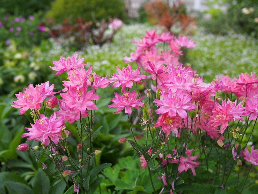 Розовые и синие цветы, сохраняющие характерную форму дикорастущего собрата, очень популярны при выращивании в миксбордерах. Они отличаются засухоустойчивостью, неприхотливы к выбору типа почвы.
