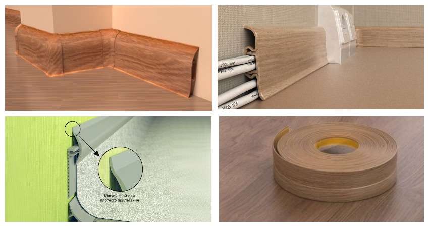 - плинтусные лента — гибкие самоклеящиеся элементы для оформления помещений сложной формы, колонн, изогнутых стыков.