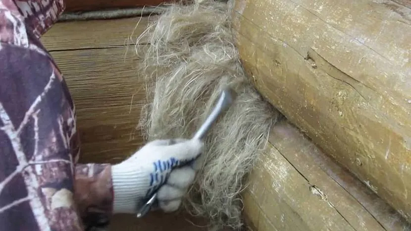Так начинают конопатить сруб паклейИсточник moidom38.ru
