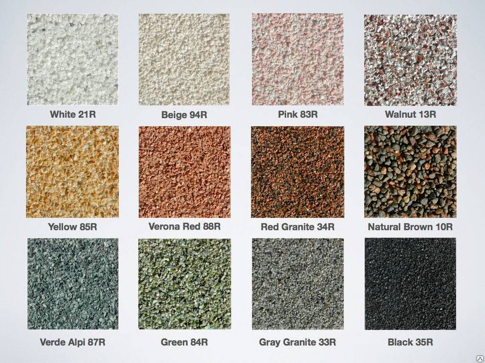 - Акрил, цемент, силикат – главные составляющие. Фактурность достигается за счёт минеральной крошки.