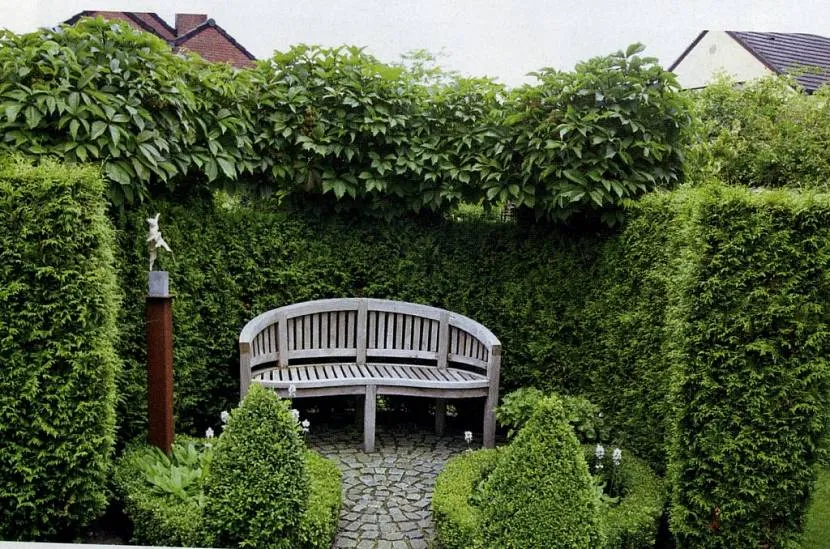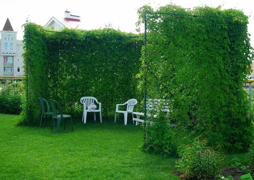 Плотный забор из перголы, обвитой плющом, девичьим виноградом, краснопузырником круглолистным или актинидией коломиктой, скроет всё, что происходит на участке, от любопытных глаз соседей или прохожих.