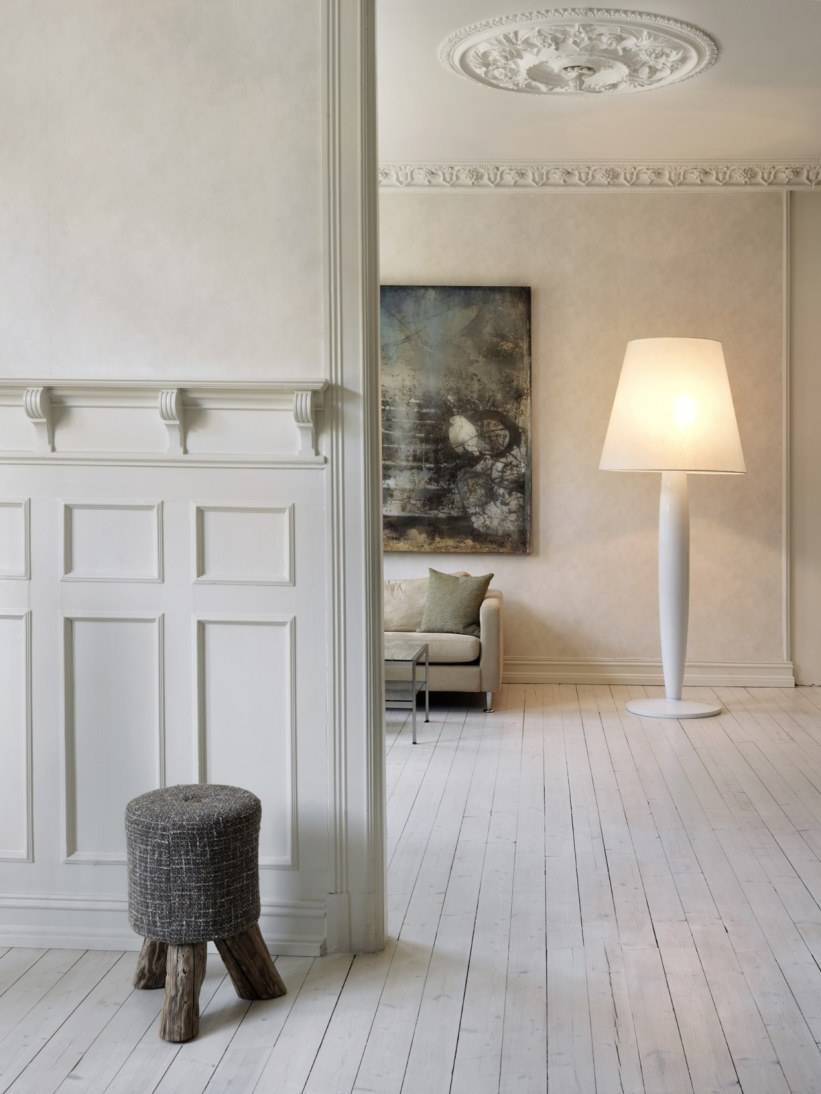 При оформлении гостиной обычно ограничиваются одной настольной лампой. Спальню или холл зачастую украшают парой светильников. Если в интерьере предусмотрена настольная лампа и торшер, выбирают модели, идентичные по дизайну.