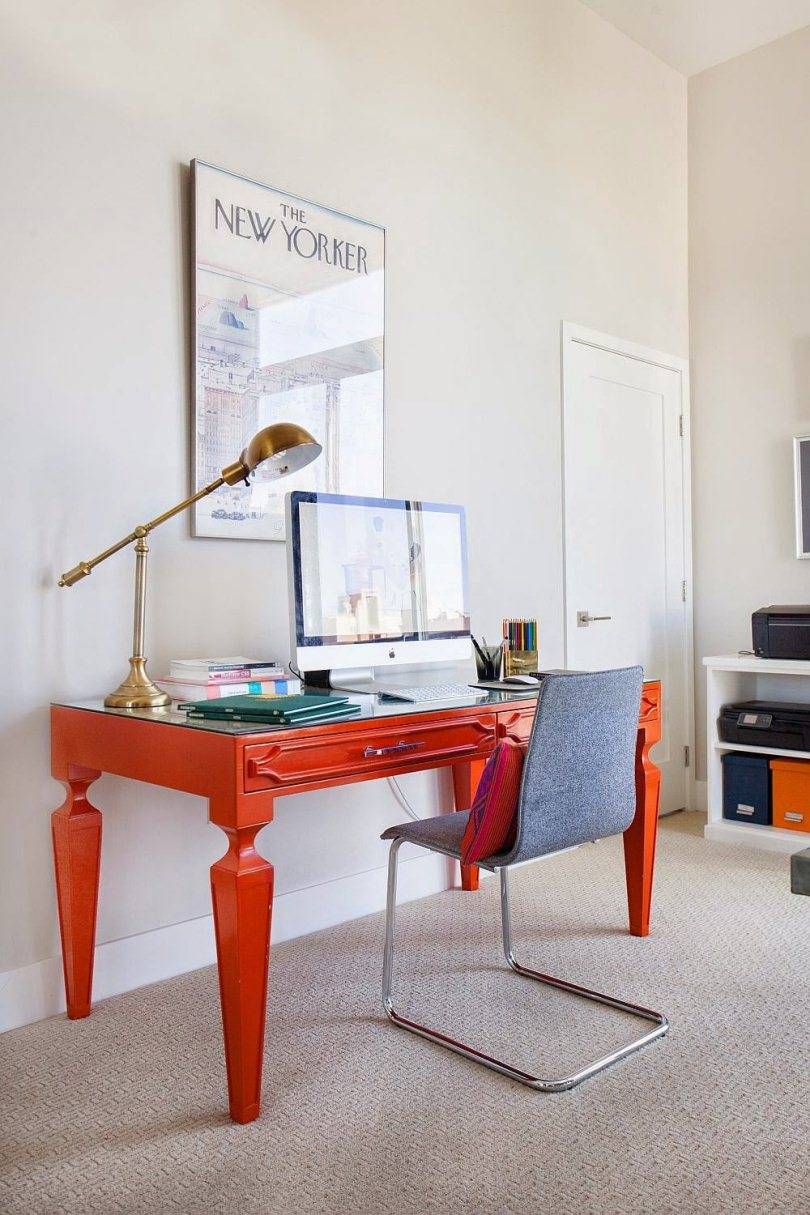Важно при оформлении зоны для работы и то, как будет установлен светильник. В данном случае лампа не должна выглядывать из-под абажура или находиться на уровне глаз