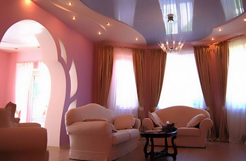 Стены при таких потолках не нуждаются в идеальной ровности.