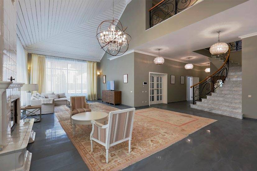 Для оформления особняка были приглашены известные дизайнеры, специализирующиеся на дорогих интерьерах премиум-уровня. Профессионалы подготовили визуализацию проекта в классическом стиле с элементами барокко, которая полностью устроила хозяев имения.