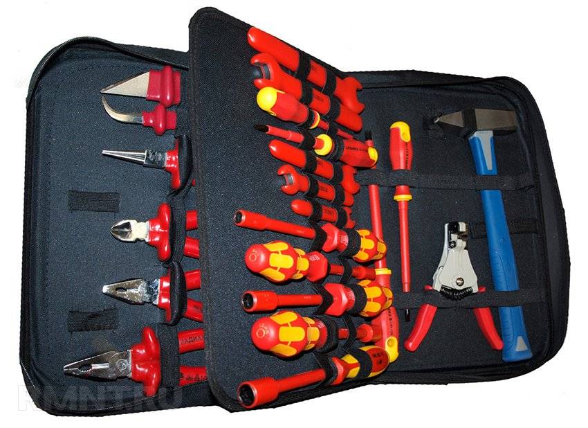 Инструмент для внутреннего электромонтажа составляет основу каждого набора. Львиная доля работы приходится на резку и разделку кабелей, их прокладку, монтаж установочных и распределительных коробок, сборку соединений, модульных щитовых и установку электротехнической арматуры — розеток, выключателей и иже с ними.
