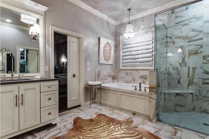 Потолок предпочитается светлый – натяжной, окрашенный, оформленный пенопластовыми панелями. Допускаются небольшие перепады высот для выделения разных зон, например, прихожей. В ванной комнате все покрытия выбираются водостойкие, имеющие надежную защиту от плесени, грибка.