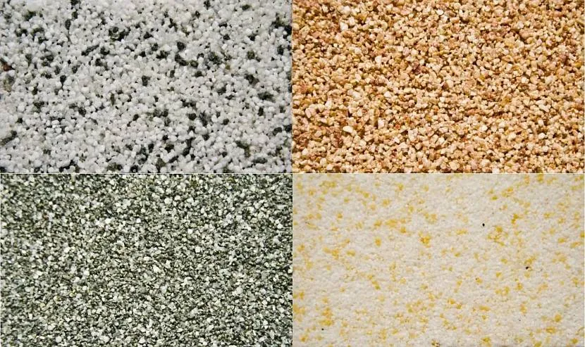 Большой популярностью пользуется мозаичная штукатурка. Она содержит мелкую крошку в составе. После высыхания создаётся впечатление разноцветной мозаики. Обладает отличными водонепроницаемыми свойствами. Это обеспечивается смолой в роли связующего вещества.