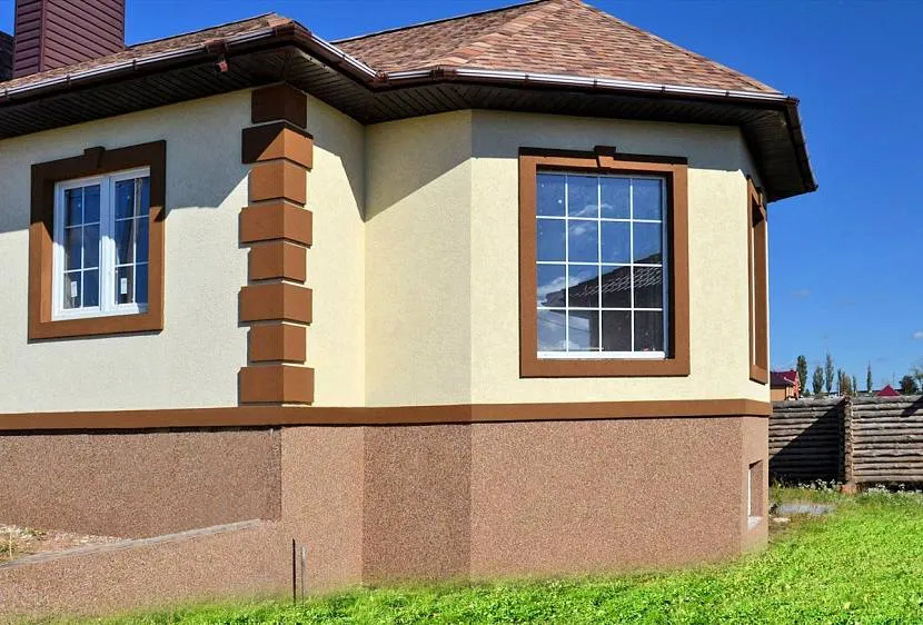 Хороший вариант – отштукатурить фасад финишной штукатуркой, цветовых вариантов существует множество, так что подобрать оттенок под цвет фасада не составит труда.