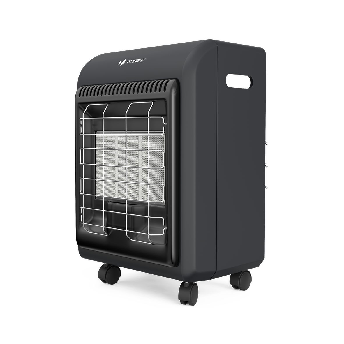 Для отопления большой площади (от 30 до 60 квадратных метров) рекомендуем купить газовый обогреватель Timberk TGH 4200 SM1. На эту модель производитель предлагает внушительную 5-летнюю гарантию, что свидетельствует о её надёжности. При выборе максимальной мощности устройство способно непрерывно обеспечивать отопление в течение 17 часов. Для удобства внутри прибора организовано пространство под баллон (весом не более 5 кг). За счёт колёсной базы обогреватель можно легко перемещать.