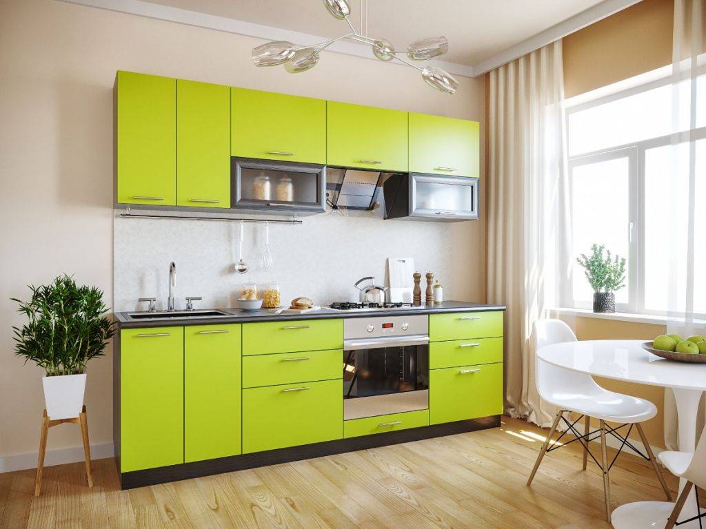 - темно-зеленый – требует применения фасадов в светлой холодной или нейтральной гамме (белый, бежевый, жемчужный, молочный, светло-серый, кремовый), а также большого количества света (не рекомендуется для кухонь с окнами на север);