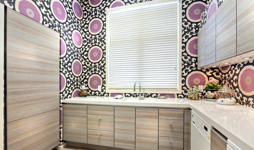Лучше остановиться на обоях, которые выдерживают влагу, перепады температур, не впитывают запахи, не выгорают под солнцем: рядом полезных свойств наделены обои винилового и флизелинового типа.