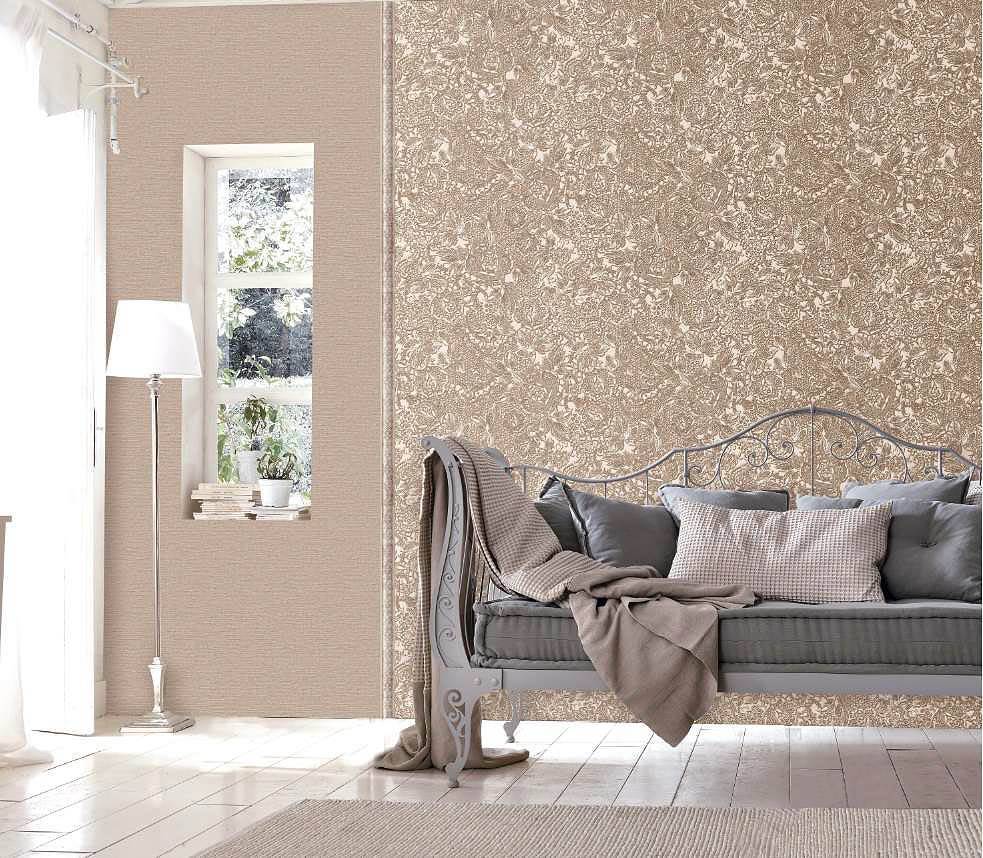 - Secrets – обои в глянцевых и миндальных оттенках. Очень гармонично сочетаются цветы с различными утонченными деталями. Создается ощущение комфорта и успокоения.