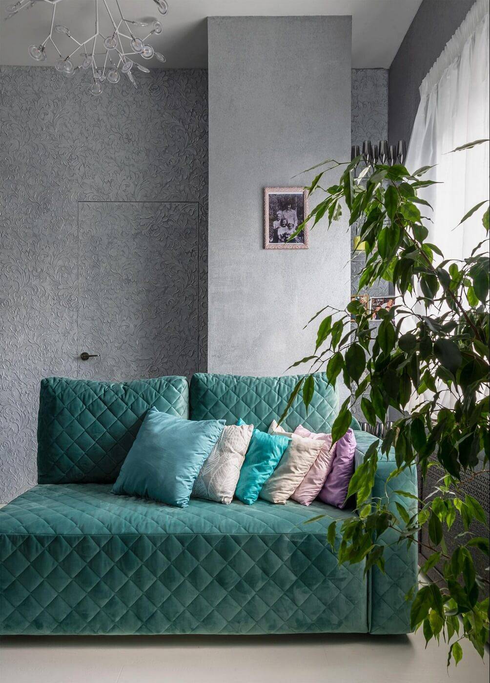 Рельеф линкрусты на стене поможет скрыть дверь в соседнее помещение. Проект «Воздух», дизайнер Людмила Верба