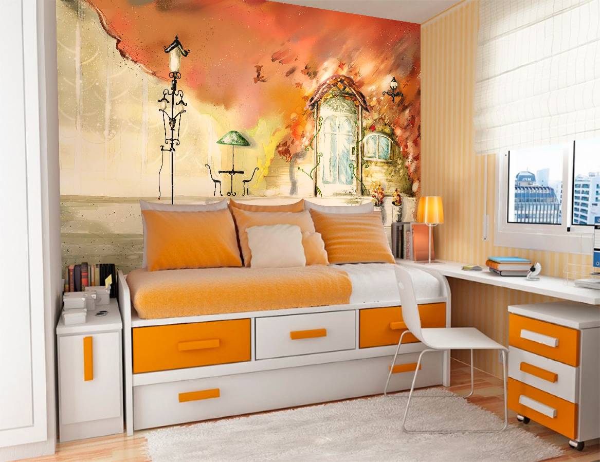 Под фотообои надо очень тщательно подбирать расцветку и декор других стен, чтобы не было переизбытка цвета. Не надо оклеивать фотообоями все стены, вполне достаточно будет одной, максимум полторы стены. Даже если первоначально идея покрыть все стены фото и изображениями покажется ребенку очень привлекательной, стоит мягко, но настойчиво отговорить его.