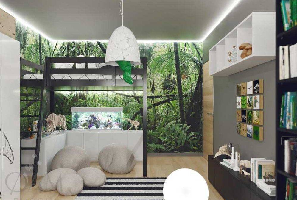 При создании дизайна должны учитываться предпочтения и интересы подростка, которые могут меняться в этом возрасте очень быстро. Универсальным вариантом оформления комнаты для девочки считаются пейзажи и цветы. До определенного периода подходят отделочные материалы с картинками принцесс, кукол Барби, Русалочки. При выборе отделки для мальчиков следует учитывать его интересы. Подростки в этом возрасте очень ценят тематический дизайн, спальня может быть оформлена в виде каюты корабля, подводного мира, космической станции.