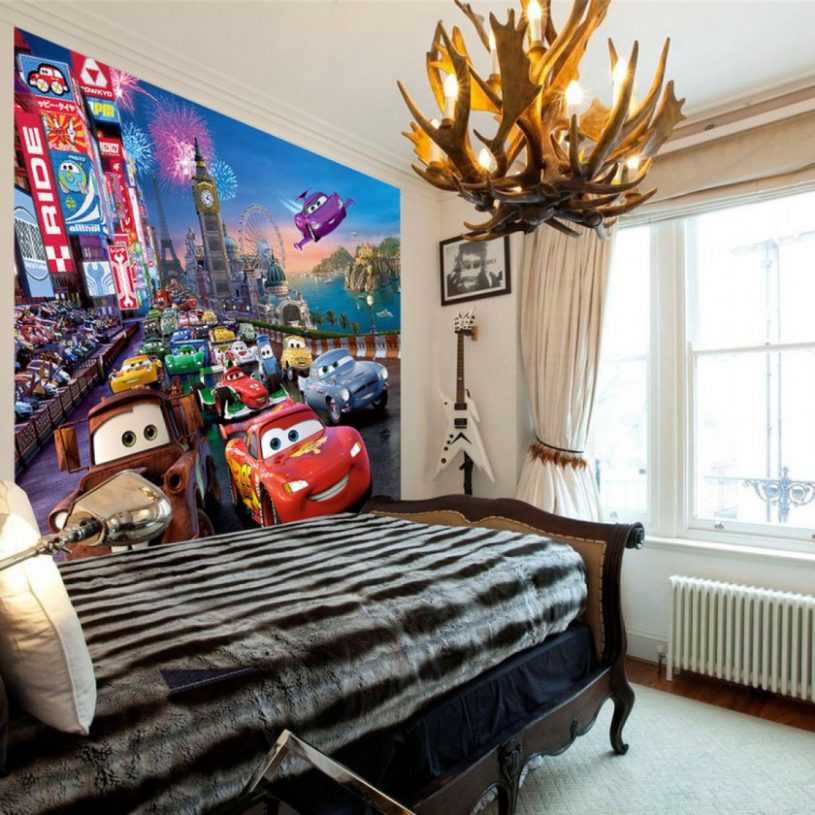 Рисунок в виде машинок становится беспроигрышным вариантом для детской мальчишки любого возраста. Для дошкольников это могут быть мелкие машинки по однотонному фону или яркие фотообои с героями любимых мультфильмов, вроде «Тачек» и тому подобное. А для школьников можно найти покрытие с гоночными автомобилями;